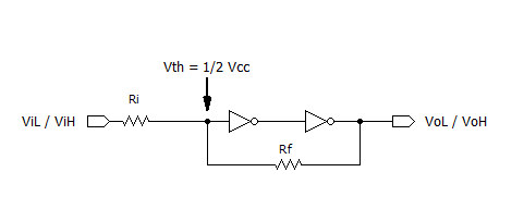 Vth = ViL + (VoH - ViL) x Ri / (Rf + Ri) = ViL x Rf / (Rf + Ri) + VoH x Ri / (Rf + Ri)